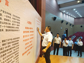 與會黨員在簽名墻上簽名